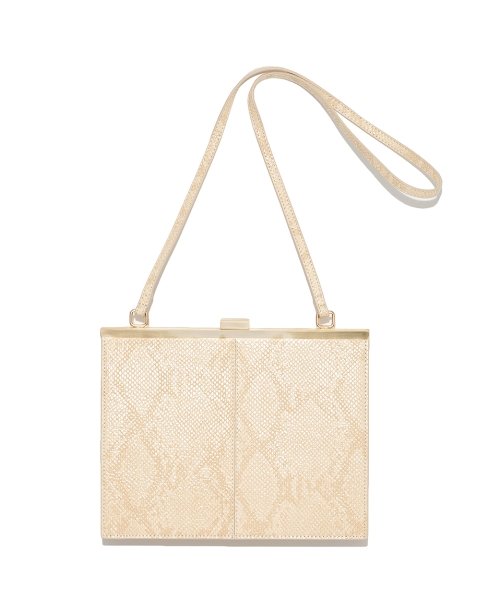 肌なじみの良いオフホワイトのほか、差し色としても重宝するブルー、レッドの3色展開です。スクエアフォルムが目を惹く、クラシカルなミニショルダーバッグです。控えめに効かせたパイソン柄や、留め具に洗練感が漂います。内側にはスエード調の裏地とポケットを施しました。コンパクトながら、計算されたマチで収納力も安心です。