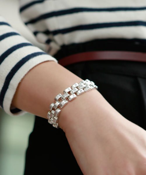 腕時計のバンドのような、しっかり存在感のあるチェーンブレスレット。