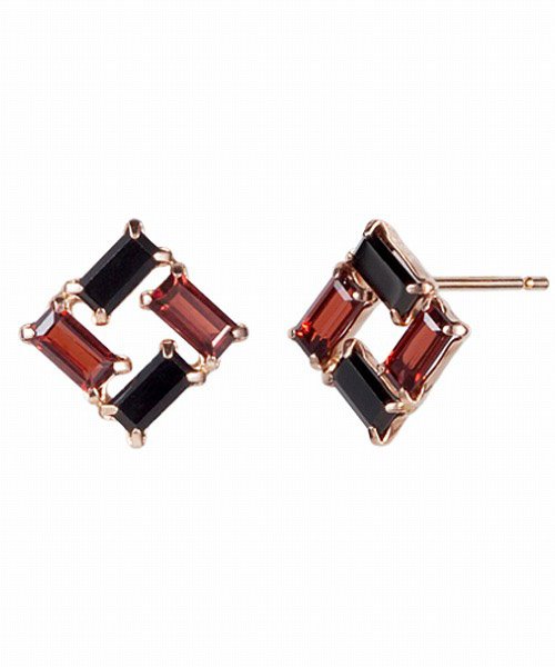 ブラックキュービックと深い色味の天然石の組み合わせがシックな印象。
