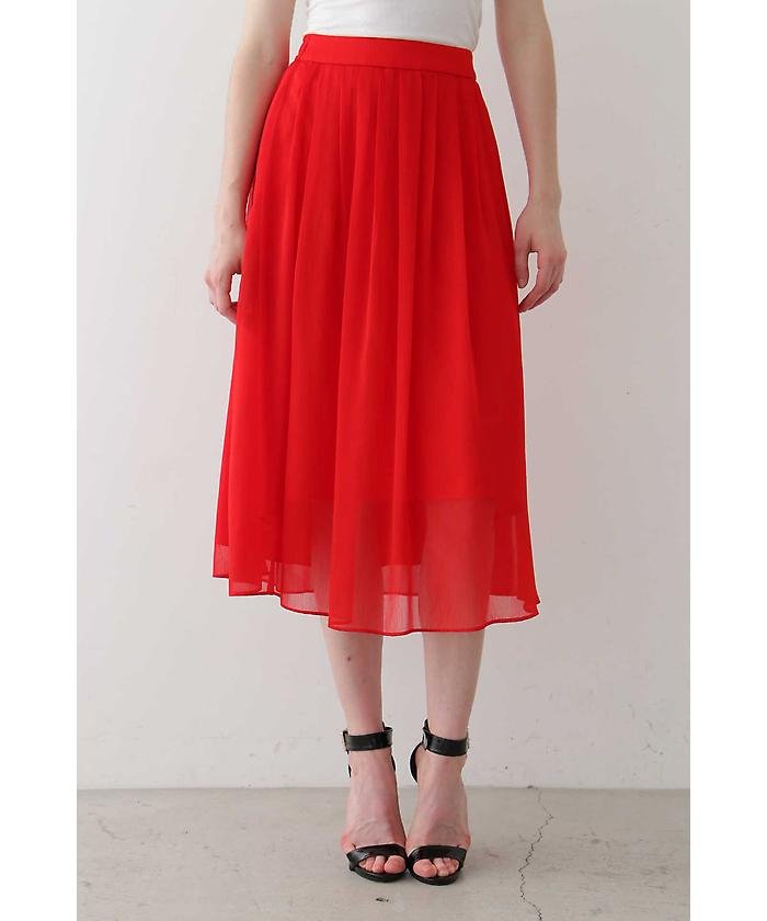 透け感のあるシフォン楊柳素材のロングスカートです。細やかに入ったタックがドレープを描き、ふんわりとした優しい印象に仕上げます。ウエストは後ろ部分にゴムを入れ、トップスをインしてもスッキリとスタイリングが決まります。